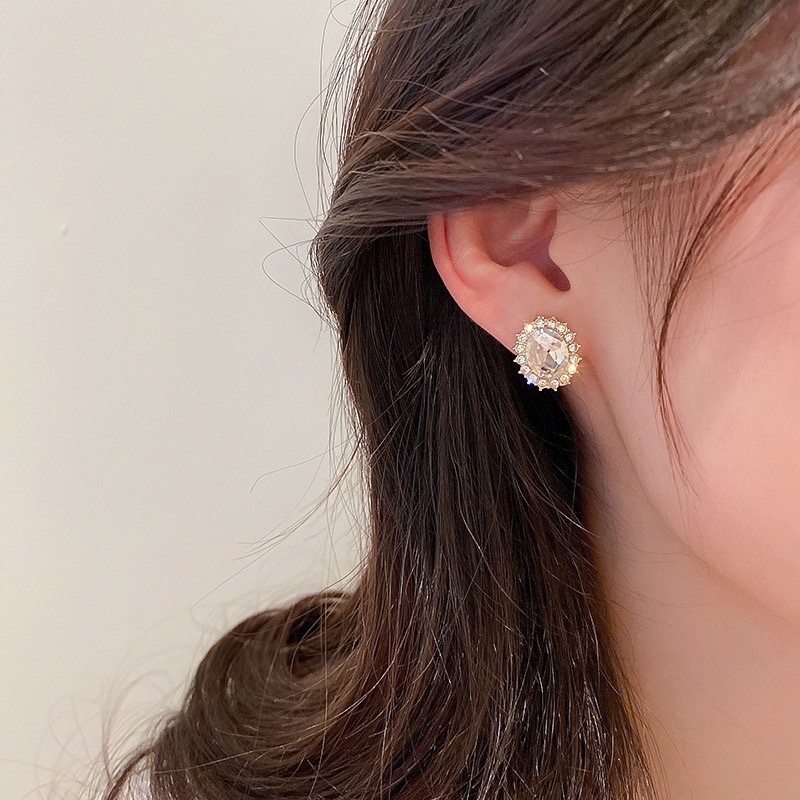 shijia crystal pearl stud earrings 925 silver (8mm)