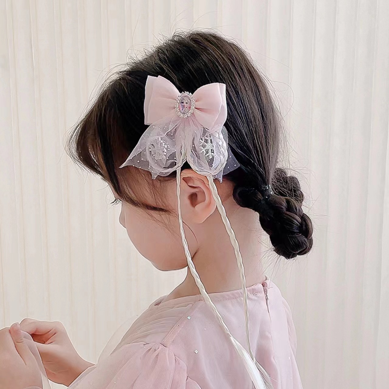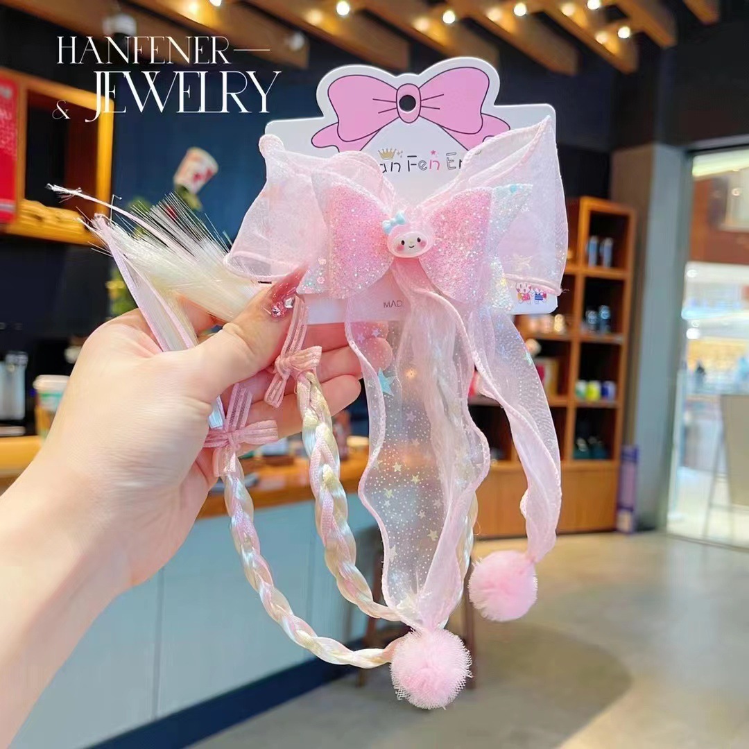 pink bow doll braid hairpin