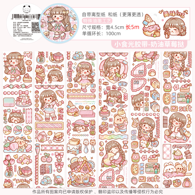 cream strawberry tart tape-japanese paper-3m long