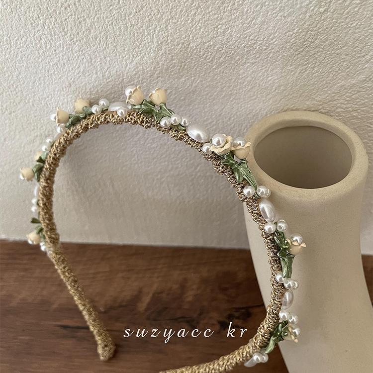 1# colorful pearl mesh woven headband
