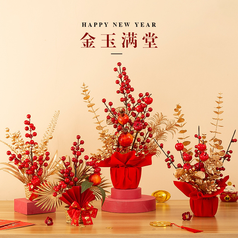 spring festival simulation chinese hawthorn 2023 new year's day living room home decoration fortune fruit hollyberry decoration