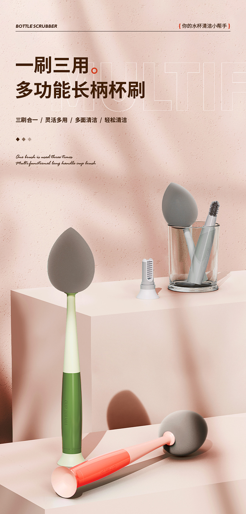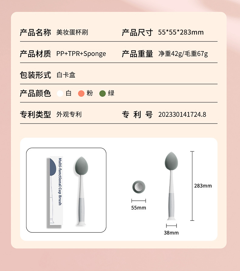 Cosmetic Egg Three-in-One Cup Brush Removable Long Handle Multifunctional Sponge Brush Cup Lid GroovePacifier Brush