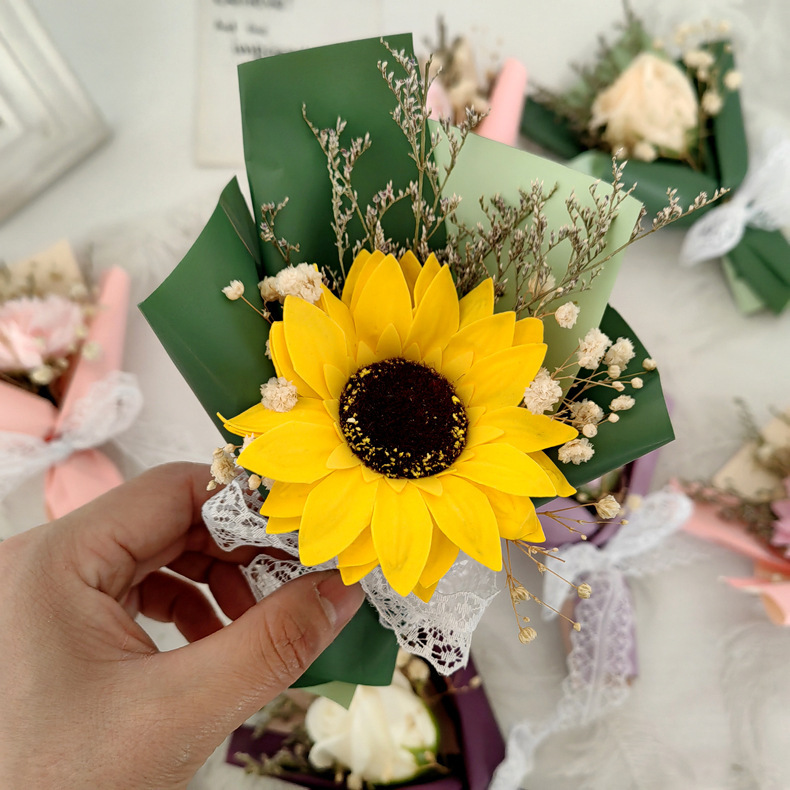 christmas valentine's day mini festival sunflower rose starry dried flower soap flower bouquet women's day
