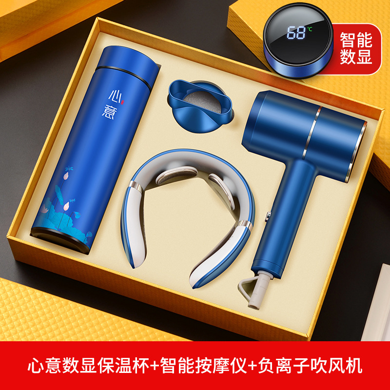 blue heart digital display cup + massage instrument + hair dryer/gift box