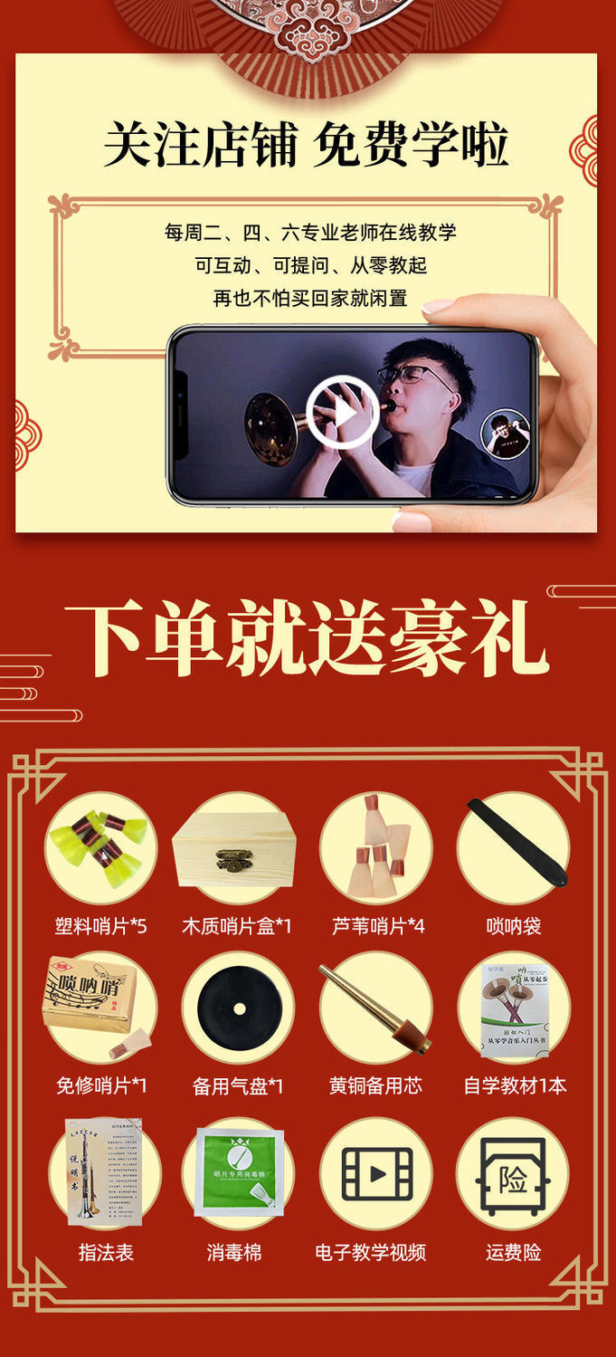 [short rod small suona horn] rosewood small f yellow bowl +7 gifts