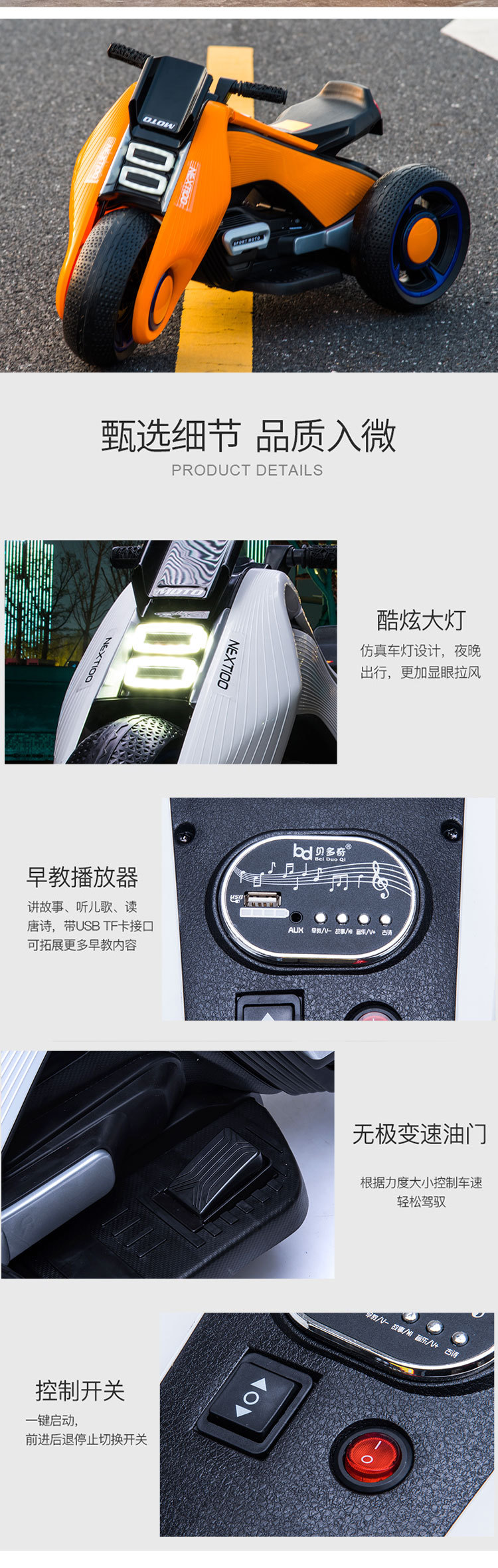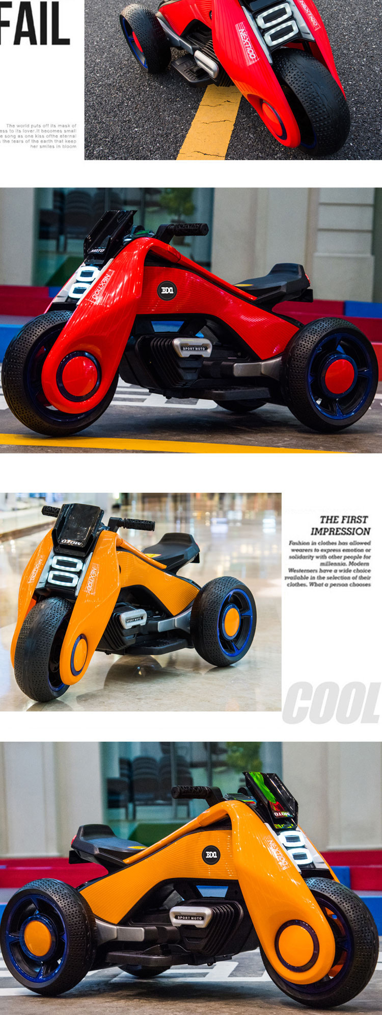 common style 2-8 years old orange +12v large battery dual drive