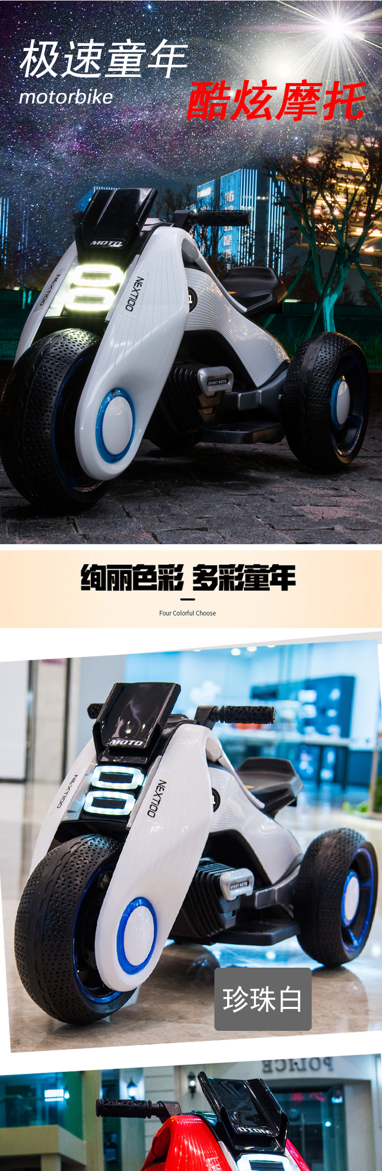 common style 2-8 years old pearl white +12v large battery double drive