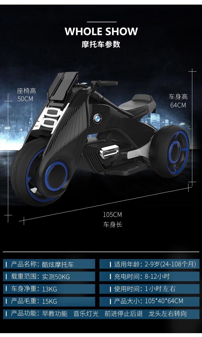 common style 2-8 years old bright black +12v large battery dual drive