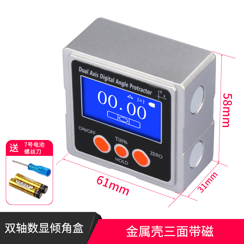 dual-axis digital bevel box (metal casing)-single-sided magnetic