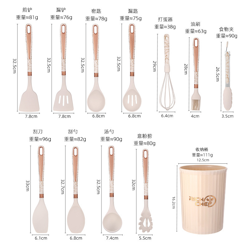 exclusive for cross-border silicone spoon spatula 12-piece non-stick pan silicone shovel high temperature resistant silicone kitchenware set wholesale