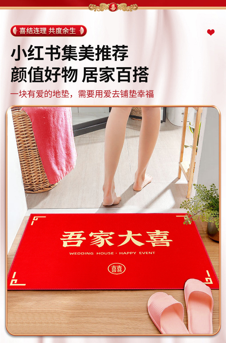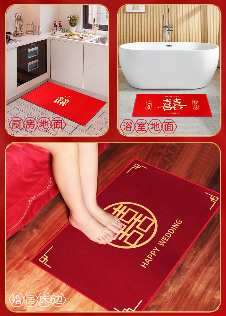 happy wedding retro red floor mat (about 50cm * 80cm)