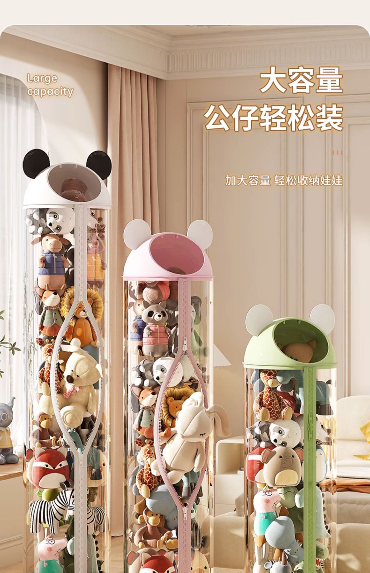 cute bear cat ear 30cm diameter + double zipper 172cm green [can hold 85 babies