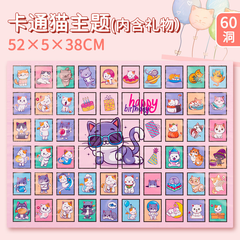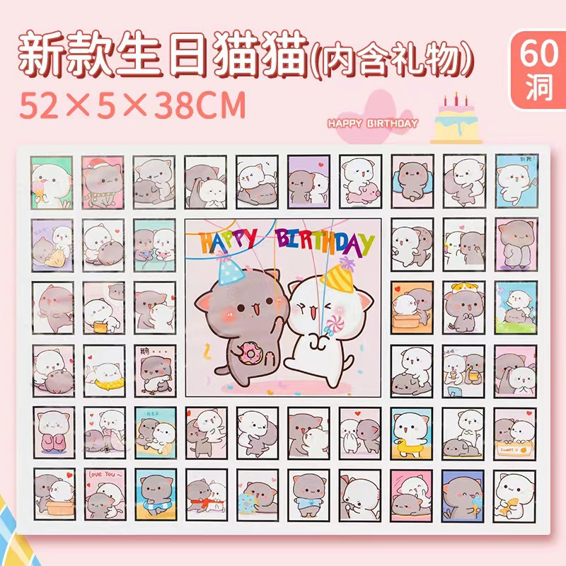 new birthday cat [60 grids with gifts] +4 cover paper +1 double-sided adhesive tape