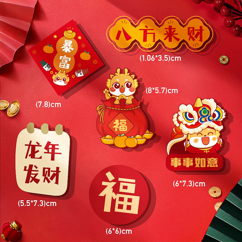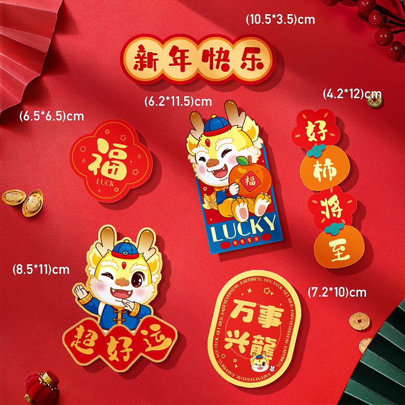 magnetic stickers, cute dragon, fortune x804(6 packs)