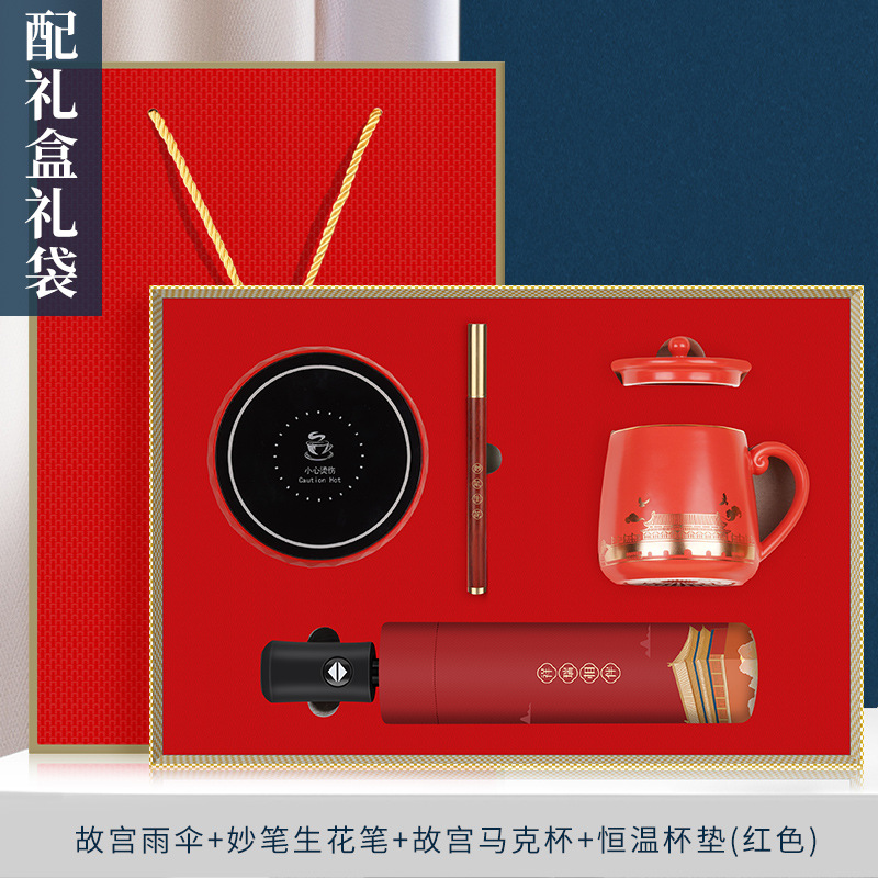 red-imperial palace umbrella + wonderful pen + imperial palace mug + thermal cup pad