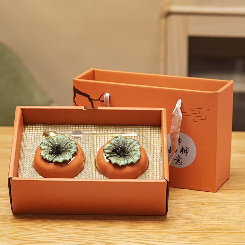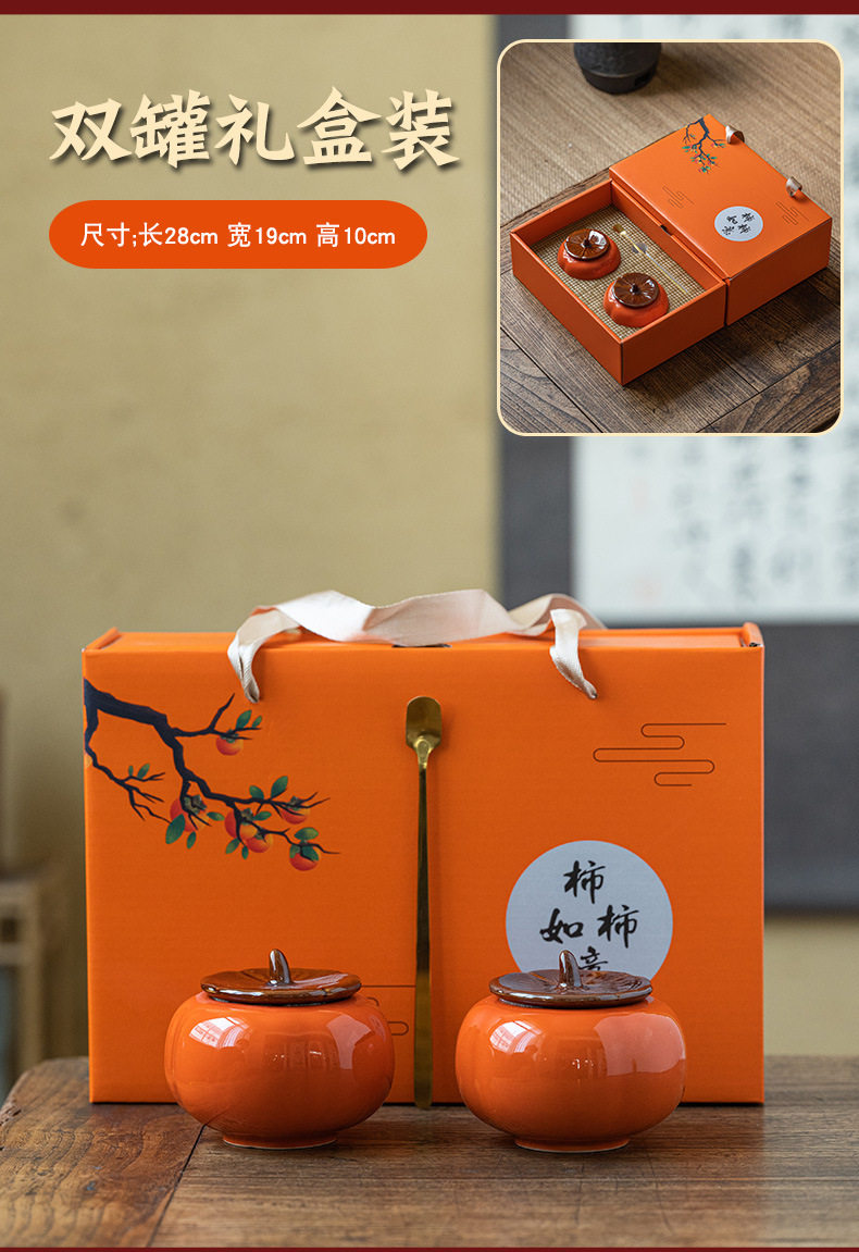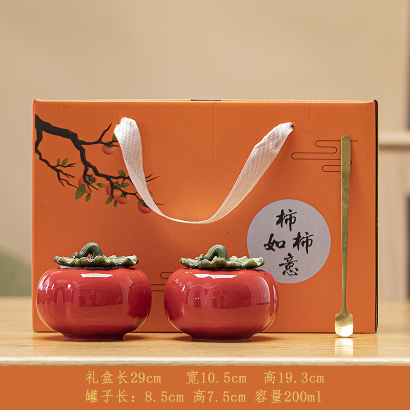 upgraded persimmon double cans gift box-orange + spoon