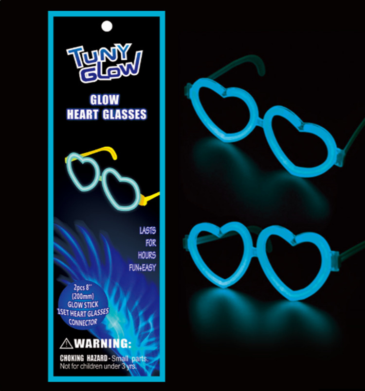【Product Composition】: Two glow sticks, one protective tube, a pair of heart-shaped glasses accessories.