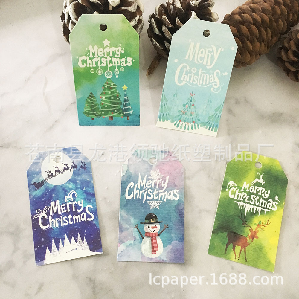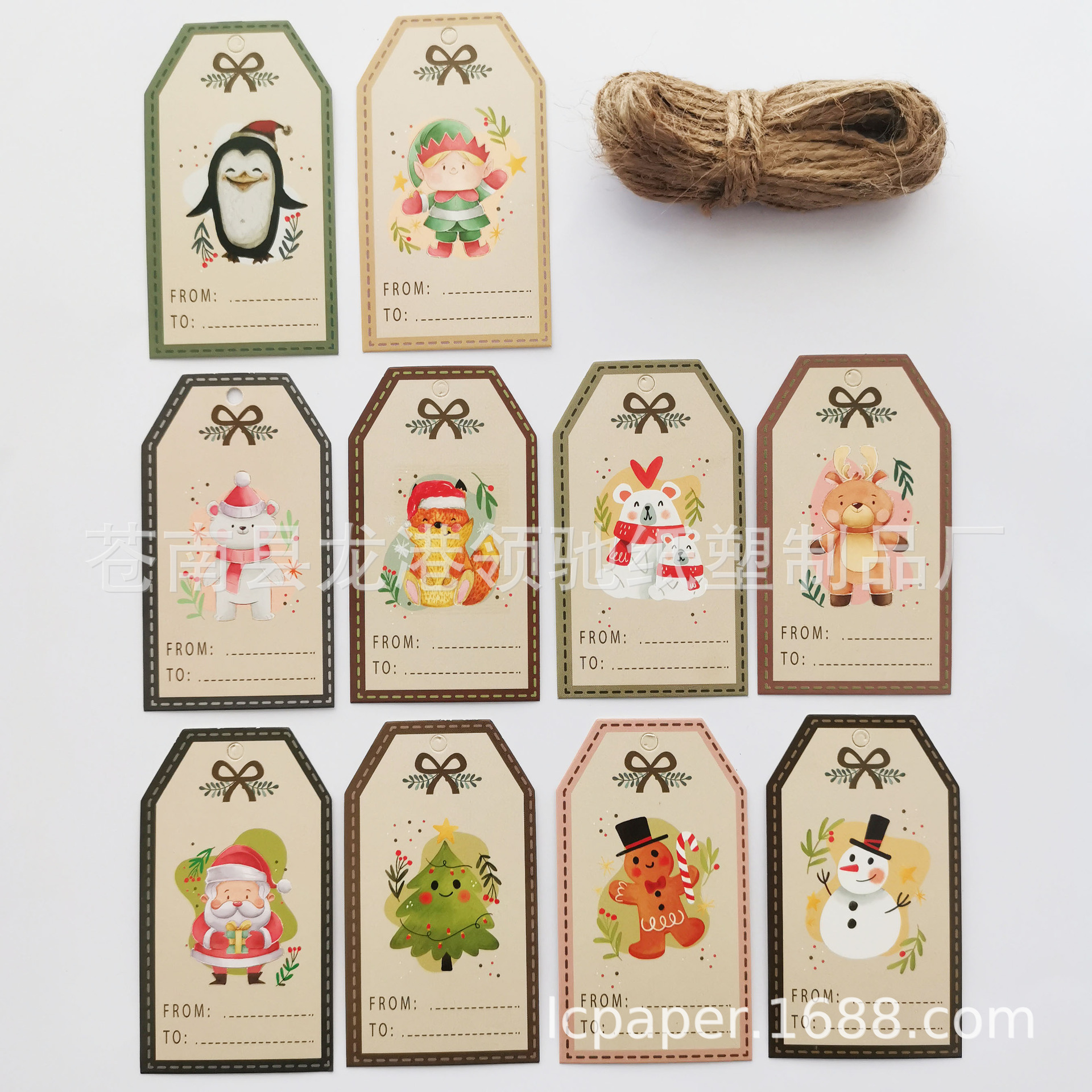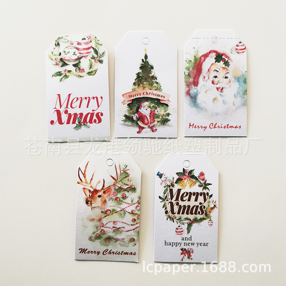 watercolor christmas 5 models with green and white cotton string