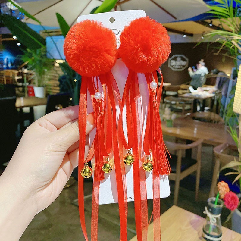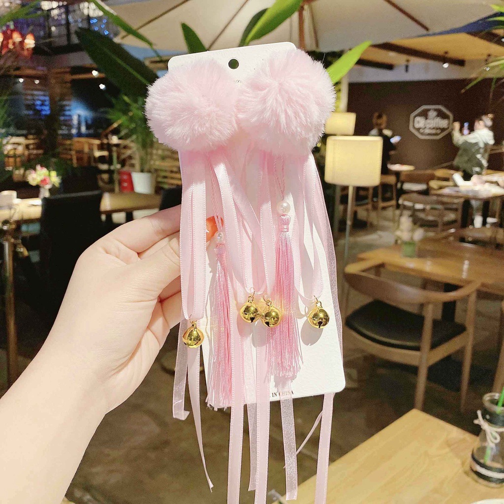 white fur ball bow firecrackers tassel