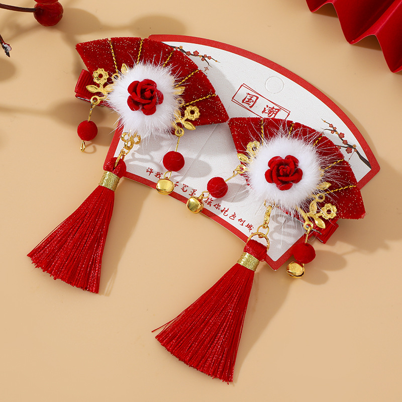 16# red noble fan-shaped barrettes
