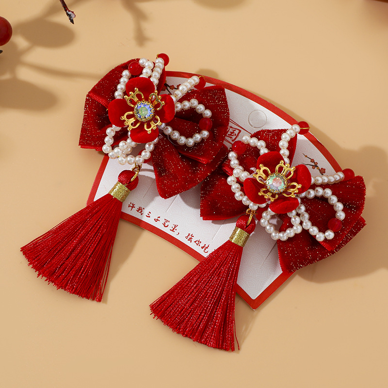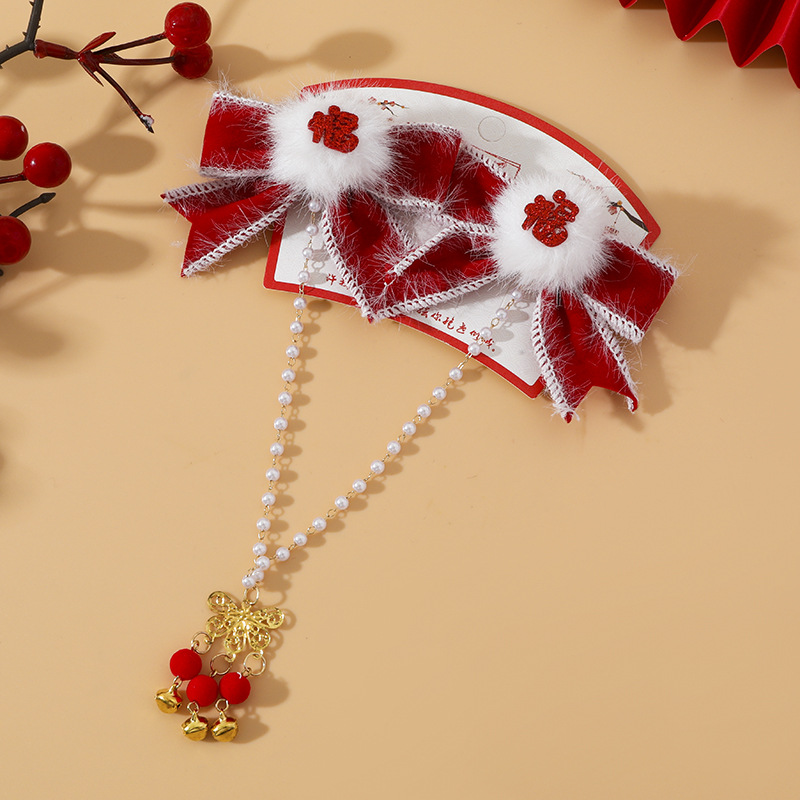 12# bowknot plush pearl barrettes