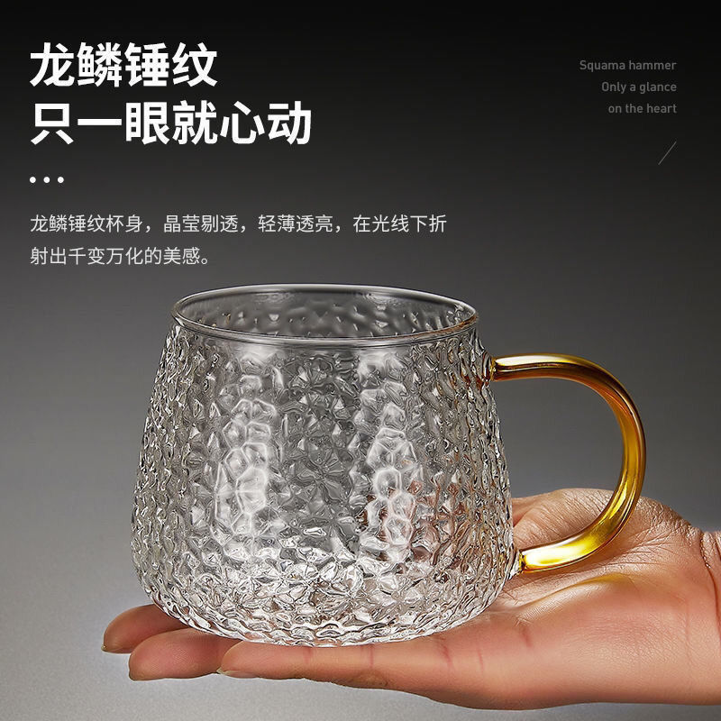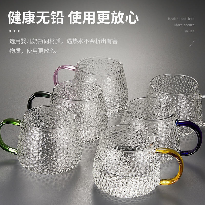 japanese style hammer pattern glass ins style female household minimalist water cup heat-resistant with handle tea cup tea making drinking cup