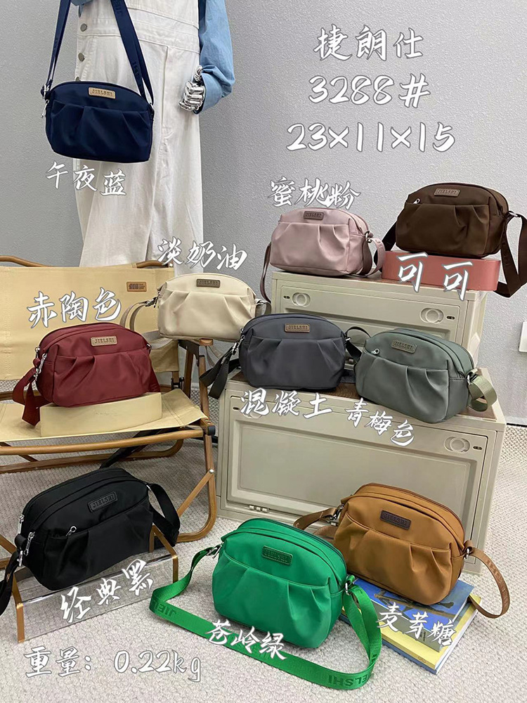 Cross-Border Foreign Trade Fashion Western Style Pleated Shoulder Bag Trendy All-Match Casual Nylon Bag Women's Casual Messenger Bag