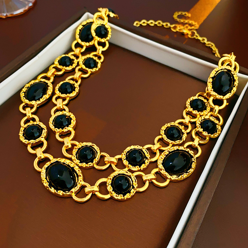 5# oval round drip double-layer necklace