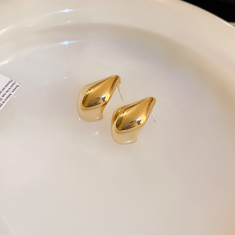 golden-silver needle bean water drop earrings