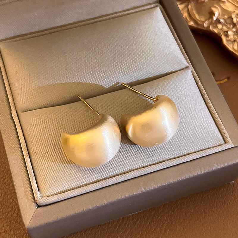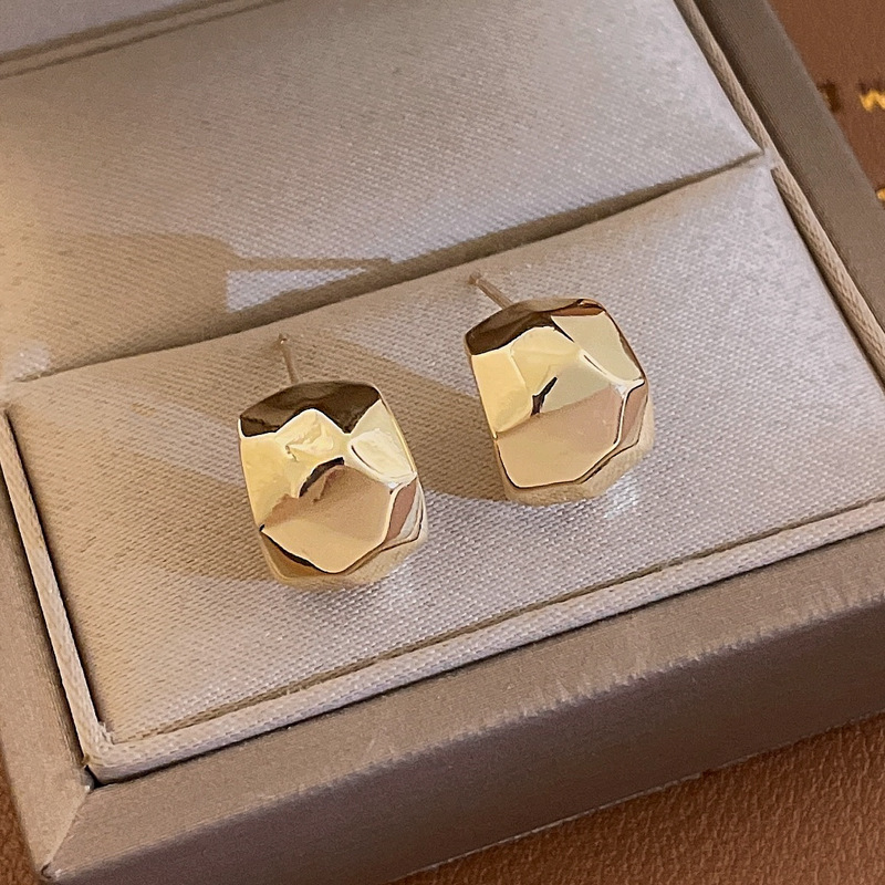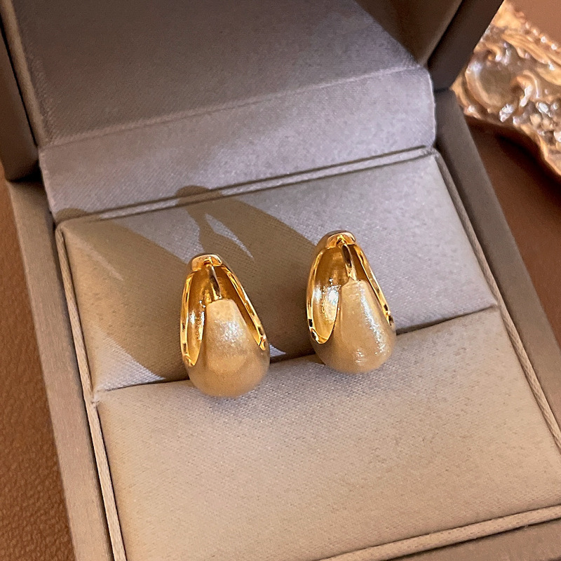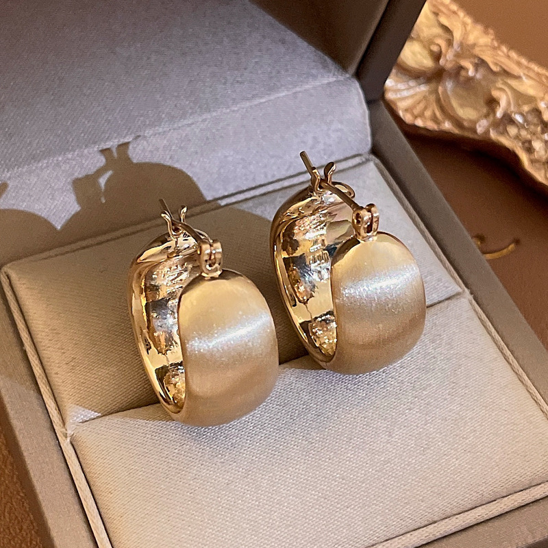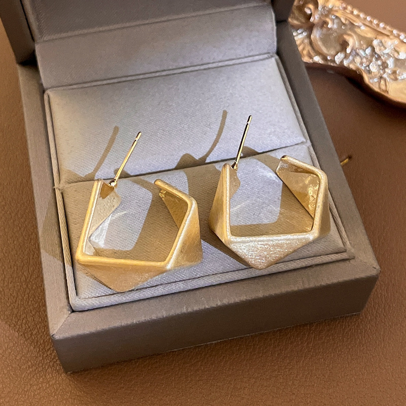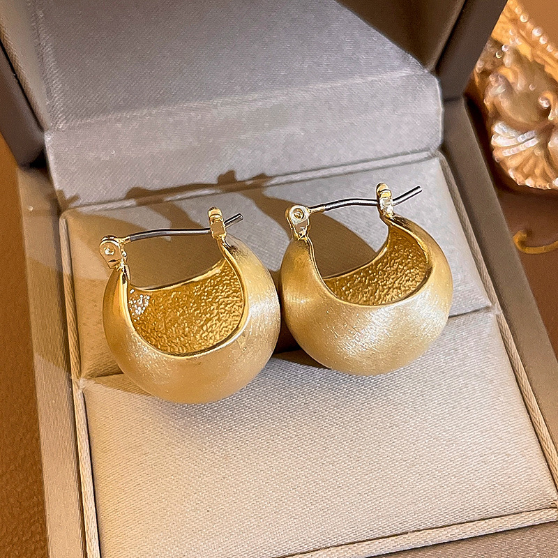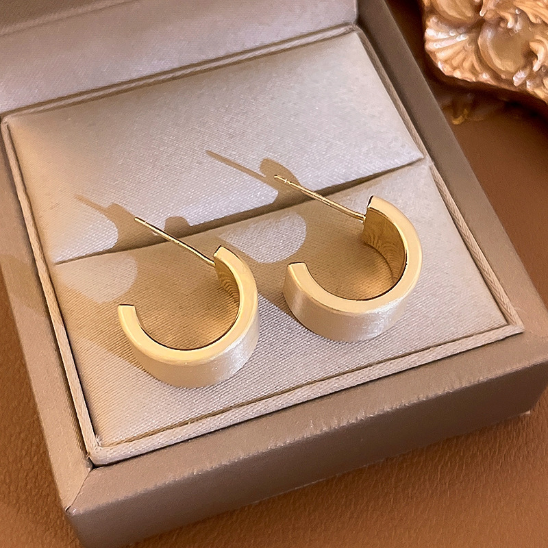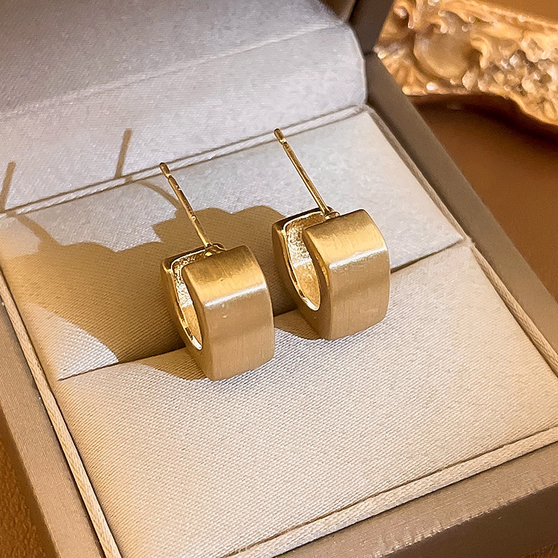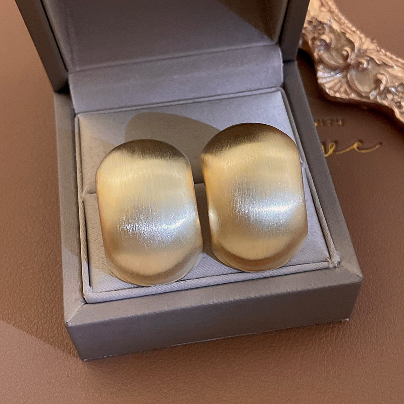 golden-silver needle c- shaped brushed earrings
