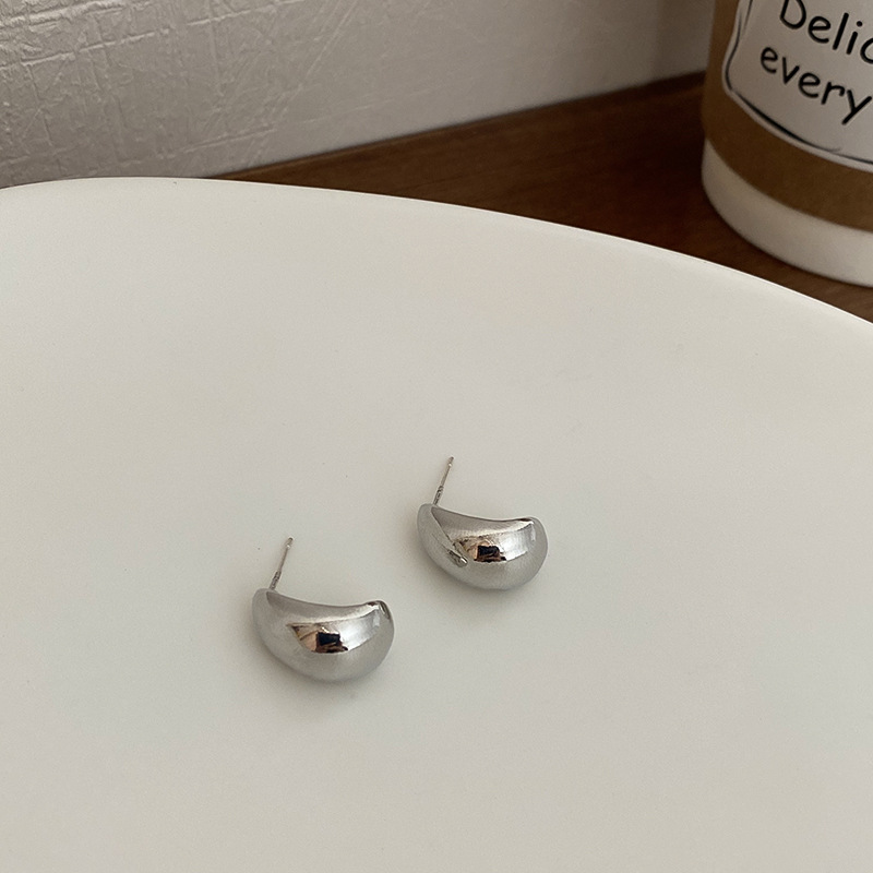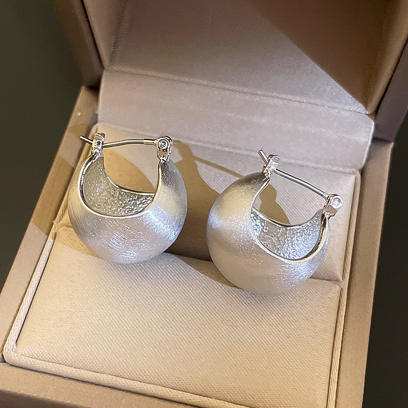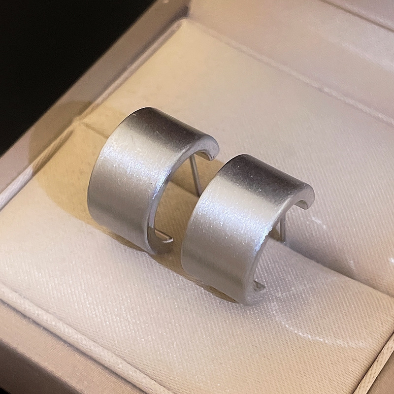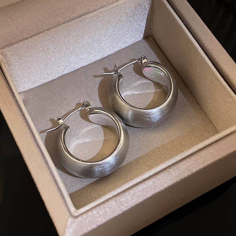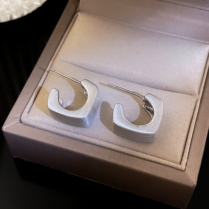 silver-silver needle c- shaped brushed earrings