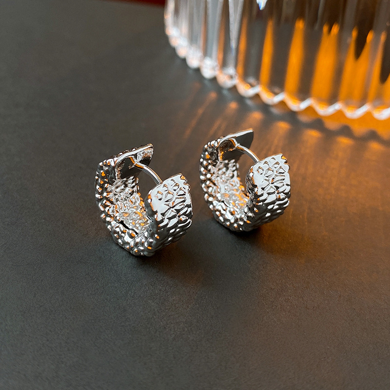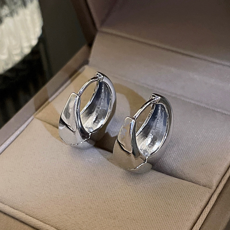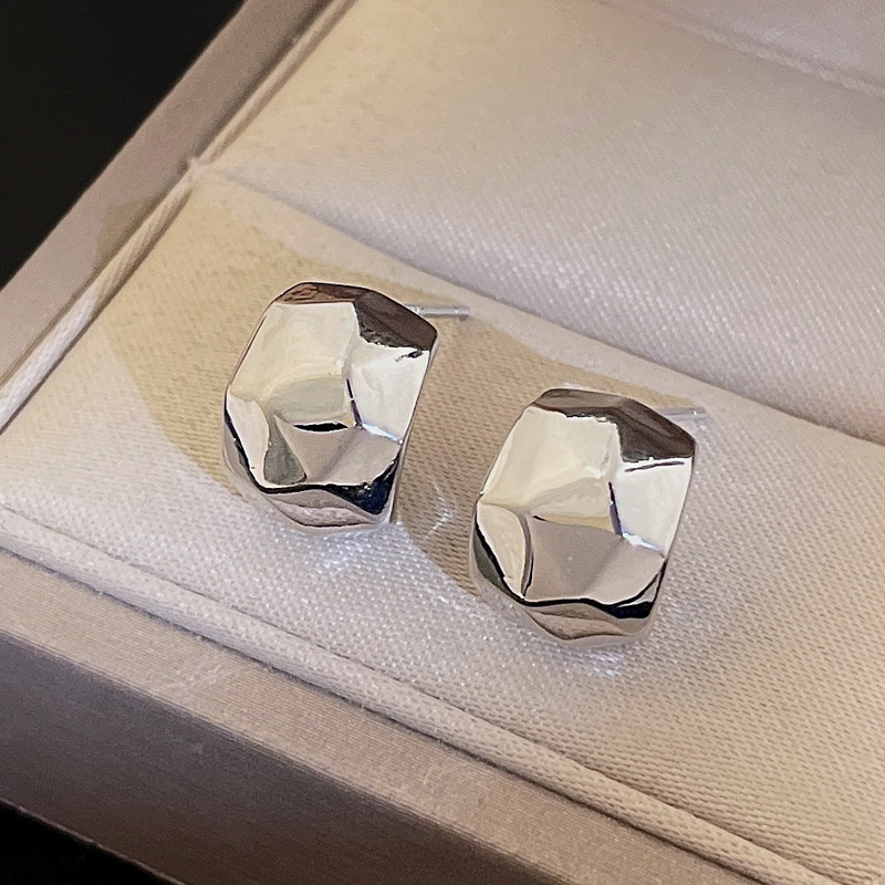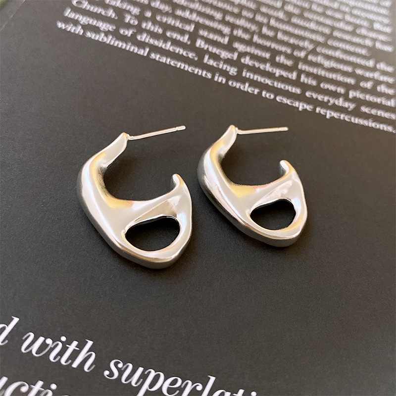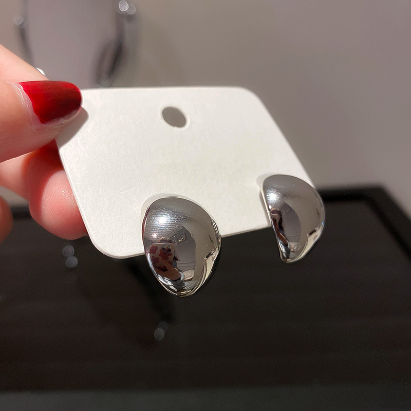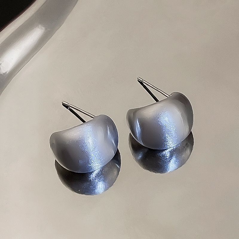 silver-silver needle c- shaped brushed earrings