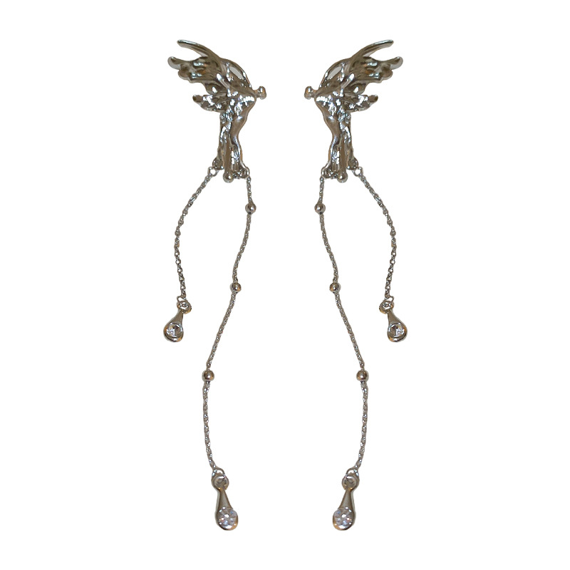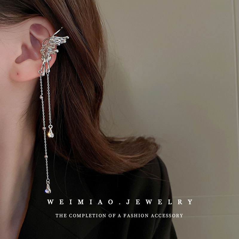 silver-butterfly tassel ear hanging integrated (single left ear)