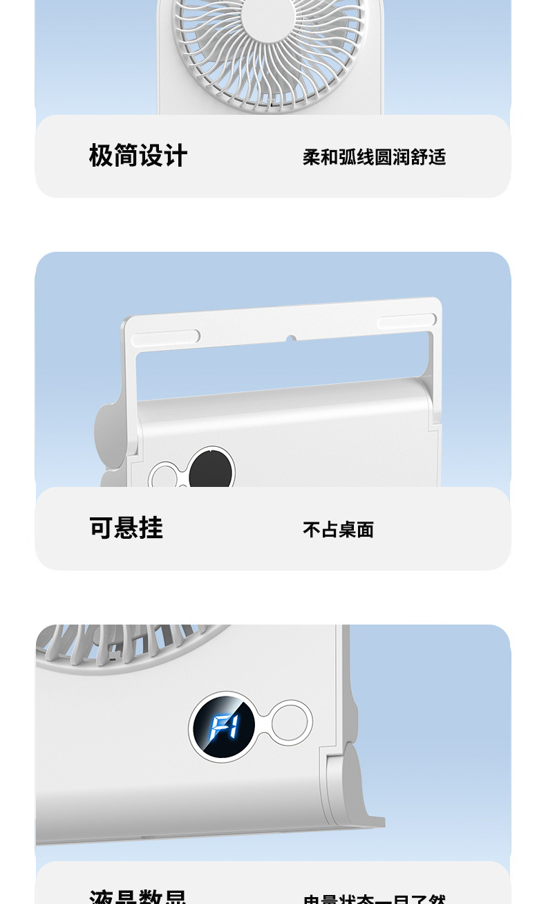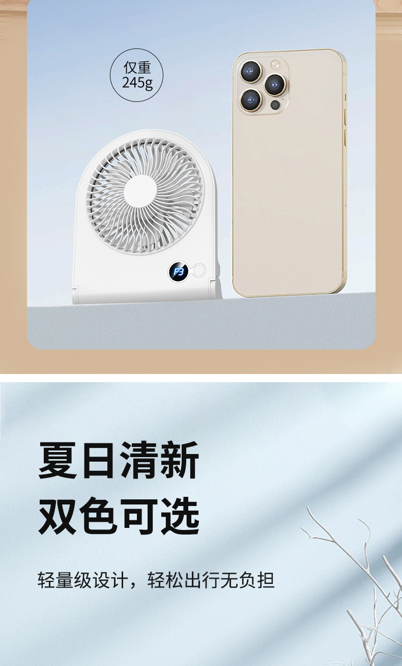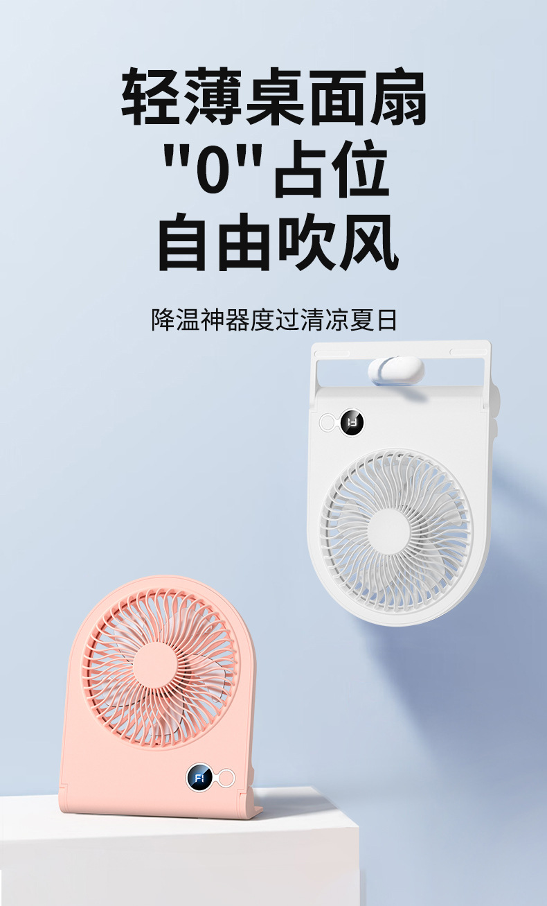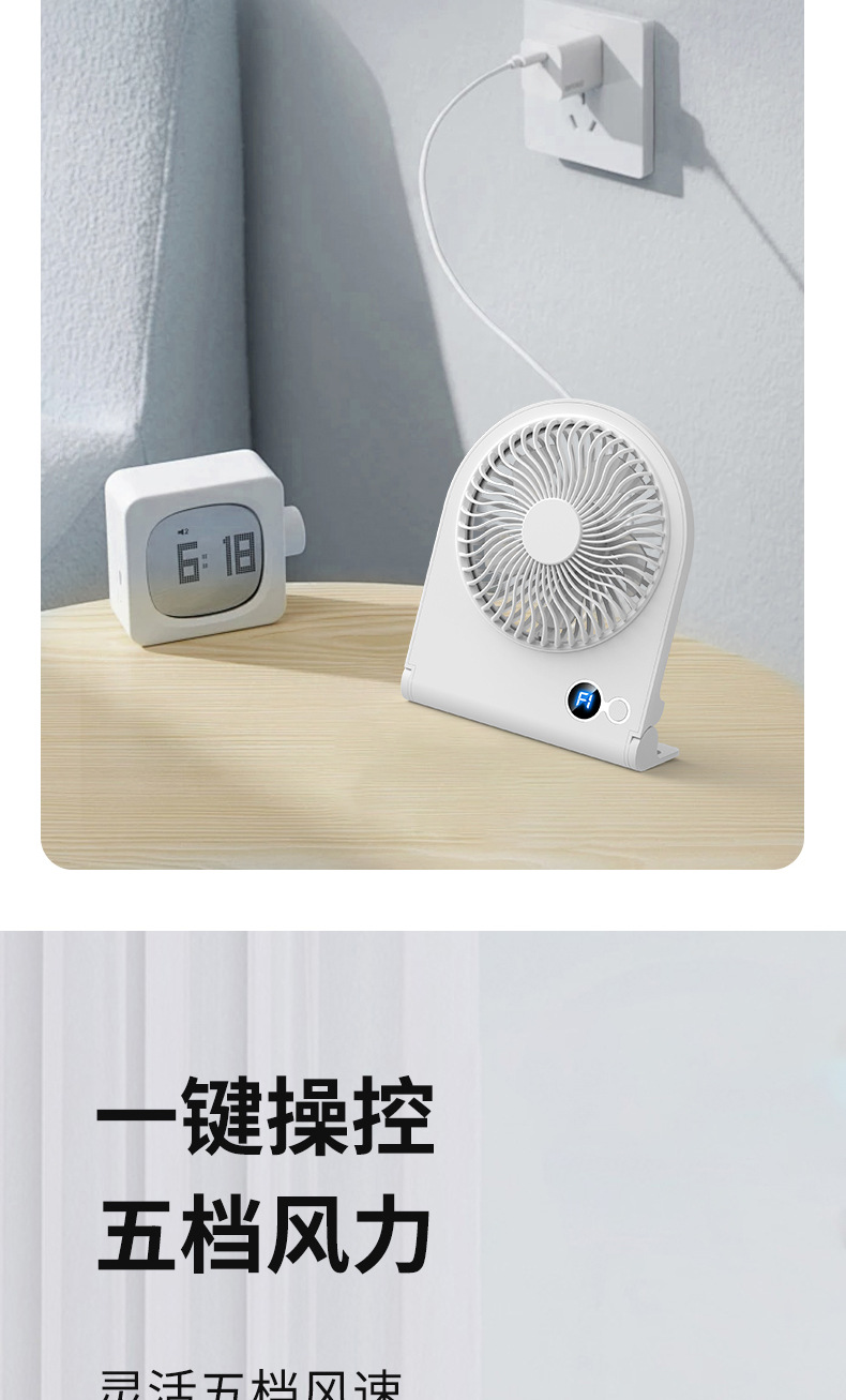 2024 new digital display desktop fan usb folding fan office desktop mute large wind wall fan