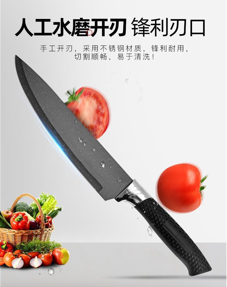 cross-border hot selling woven handle black spray point knife six-piece set stainless steel knife gift knife set suit