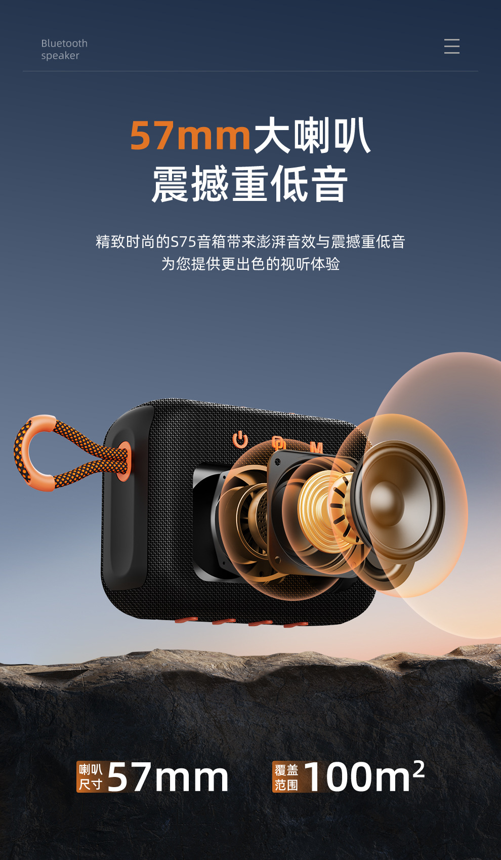 Product model: S75 Waterproof Bluetooth Speaker