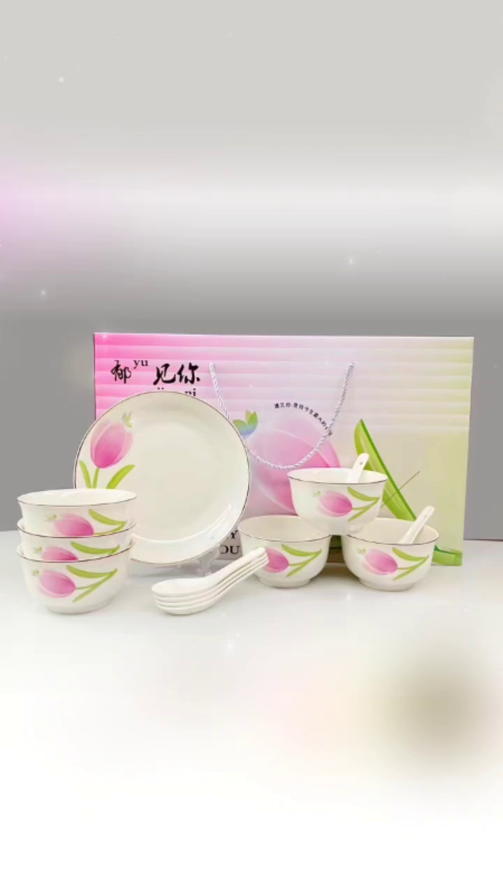 汤碗陶瓷陶瓷盘米饭碗陶瓷勺小猫盘子盘福字盘饭盘骨瓷碟米饭碗