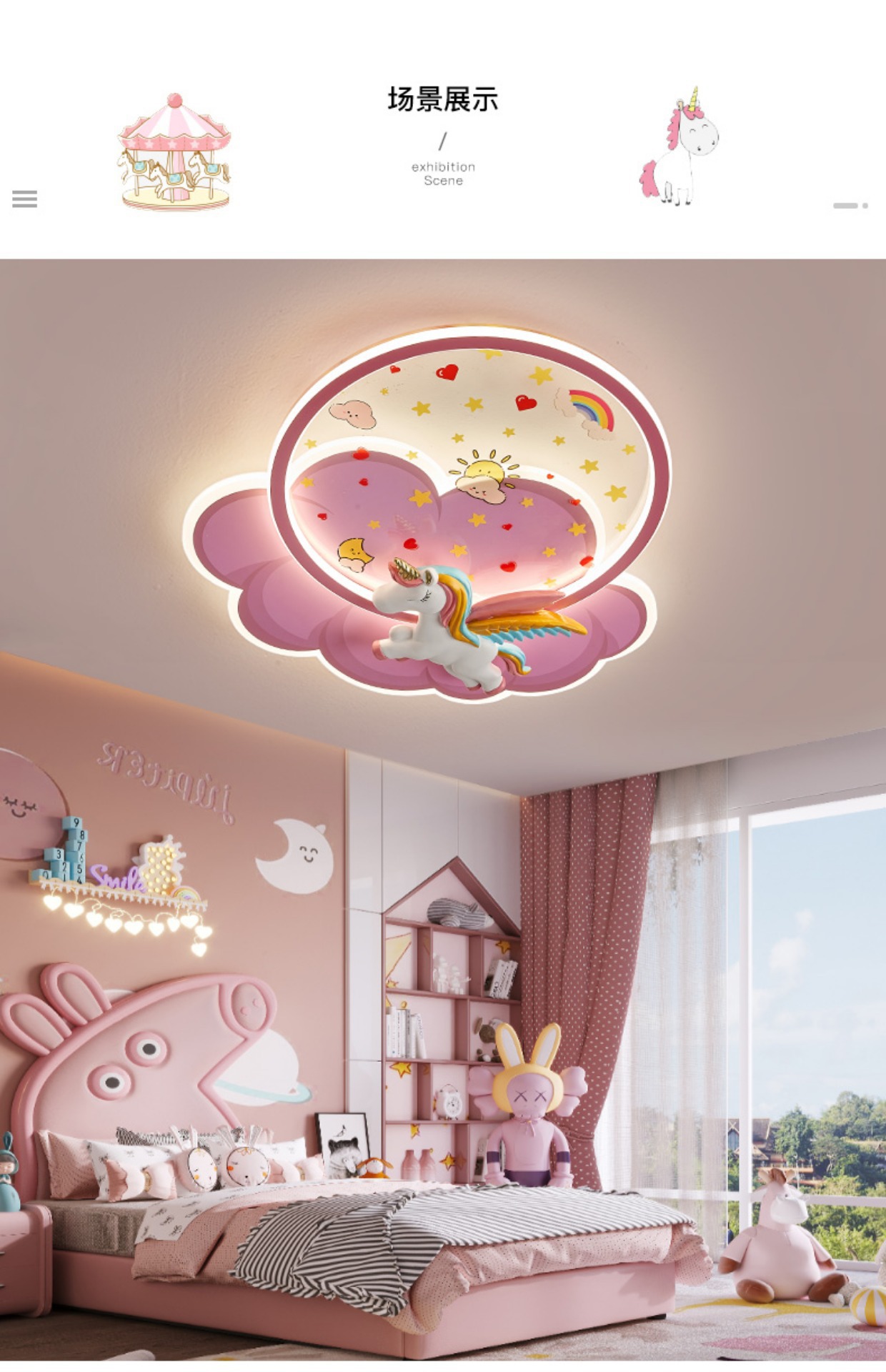 children's room children's ceiling lamp new creative cloud unicorn warm romantic girl bedroom princess room lamp