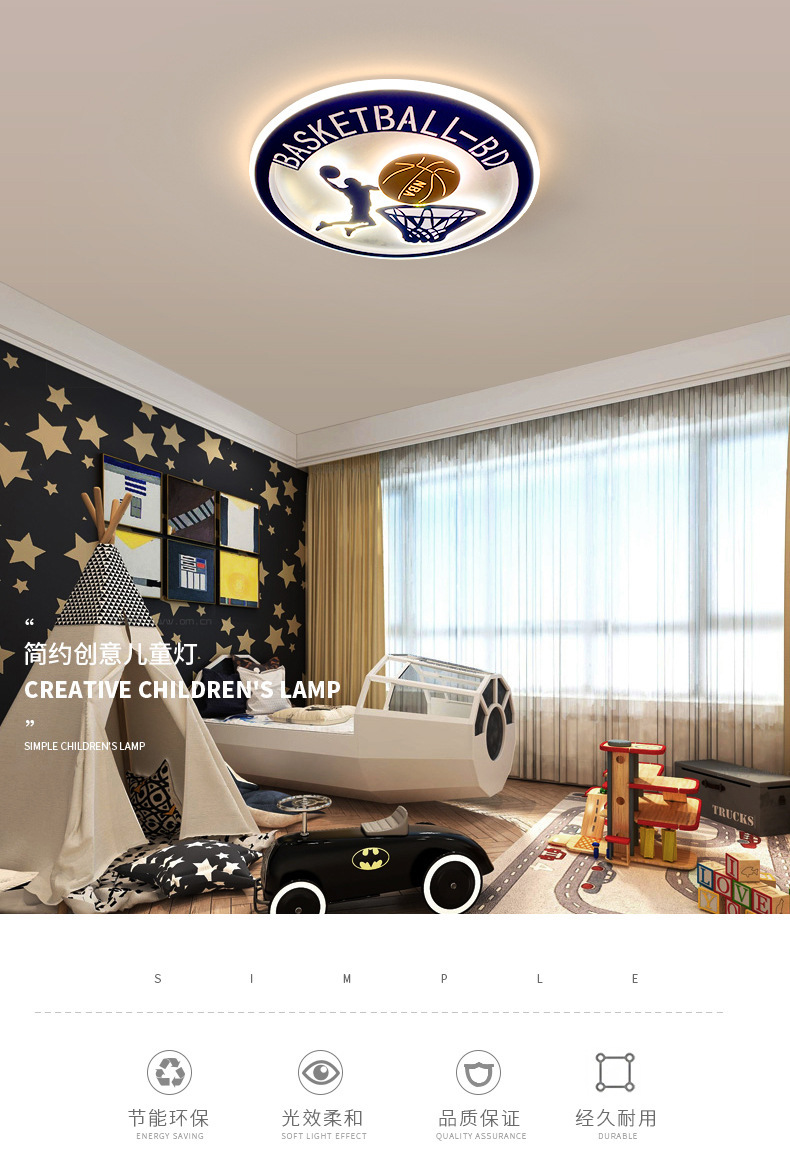 basketball nba lamp eye protection ceiling light boy girl princess room romantic cartoon led children's room bedroom light