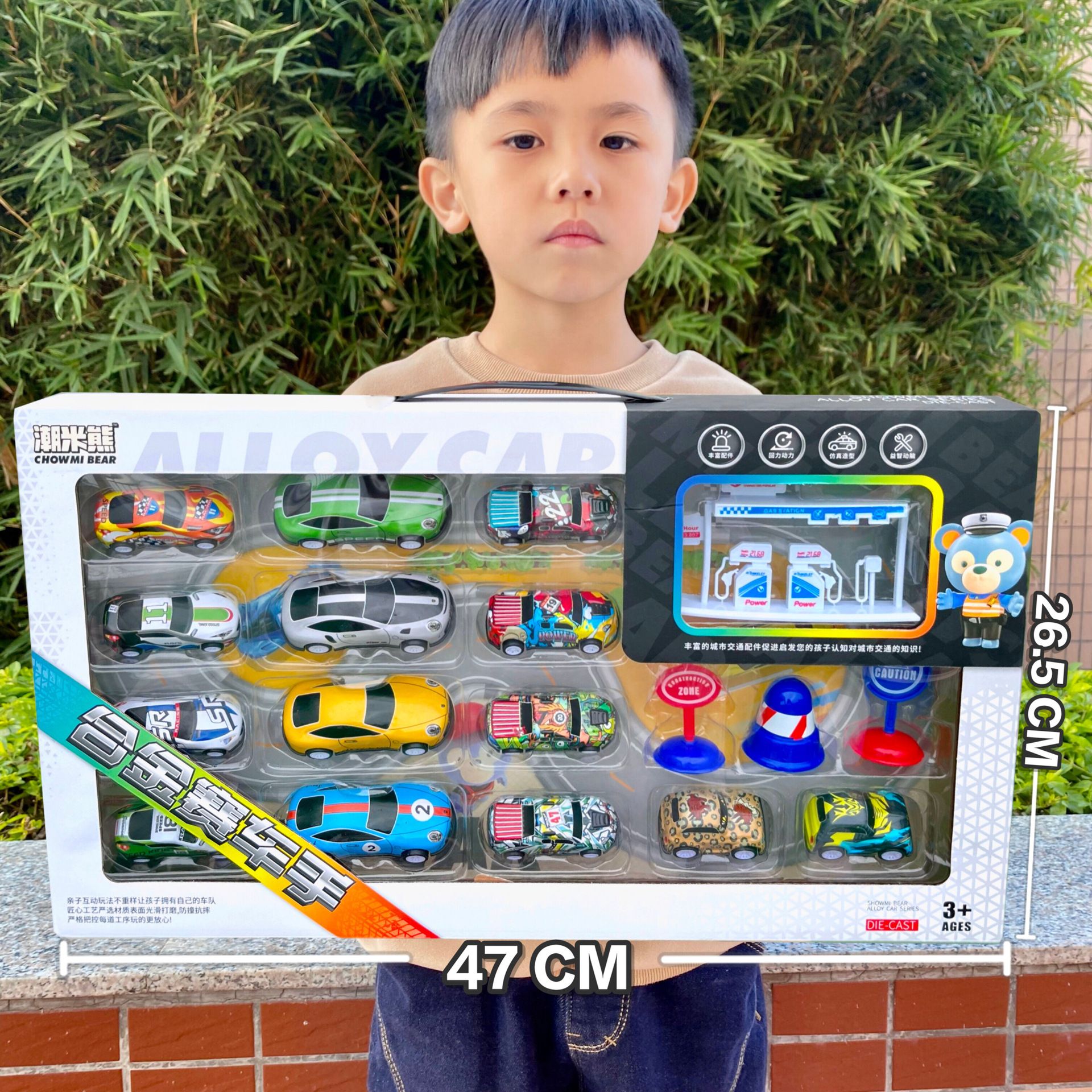 large gift box track gas station +14 pcs metal car 6399-15