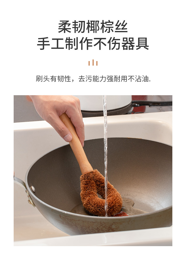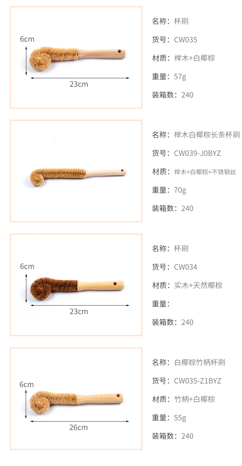 cup washing brush wooden long handle household cup brush special washing baby bottle brush dish brush cleaning decontamination coconut fabric brush