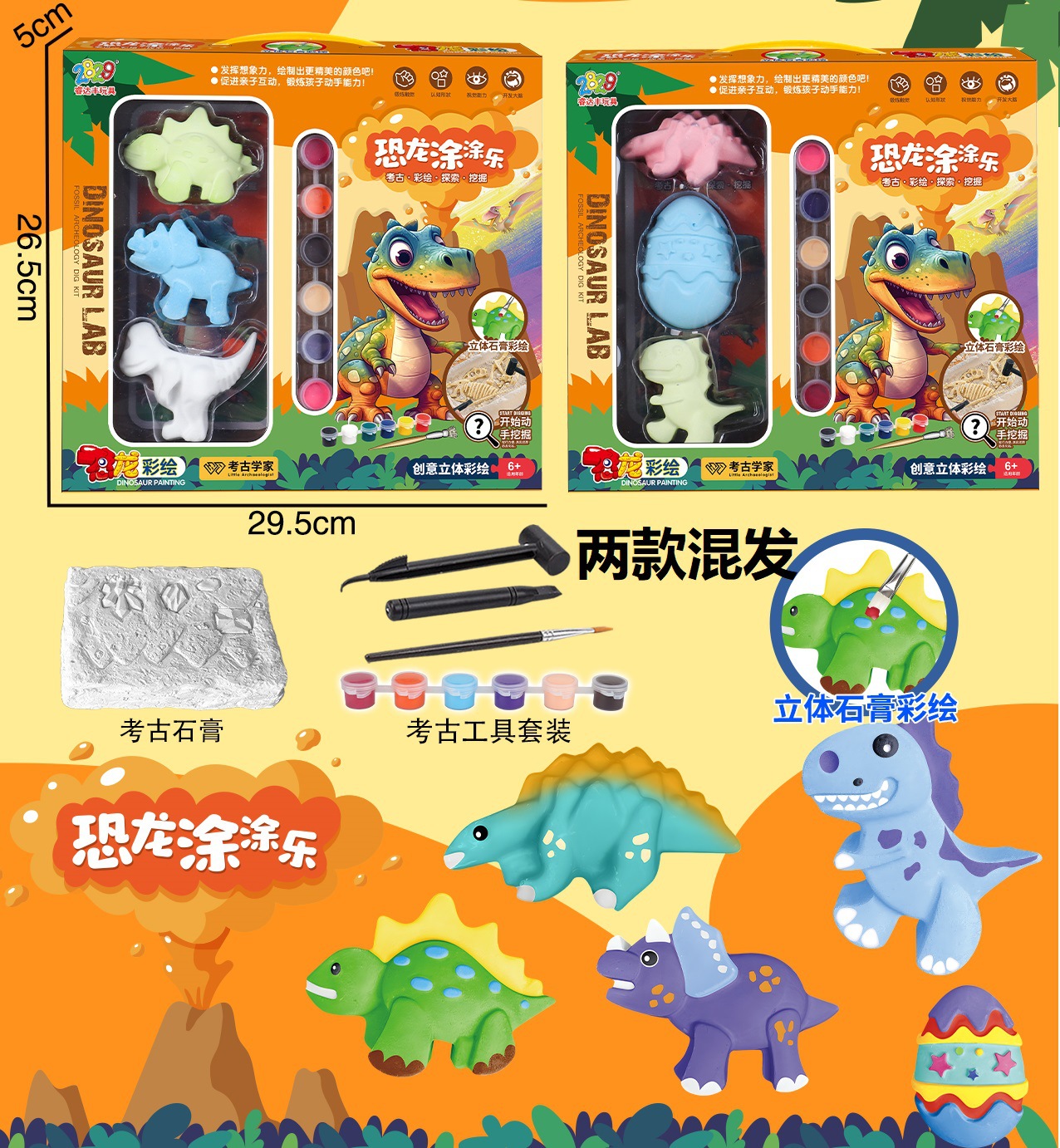 coloring plaster cartoon dinosaur big size color 6 archaeological fossil combination