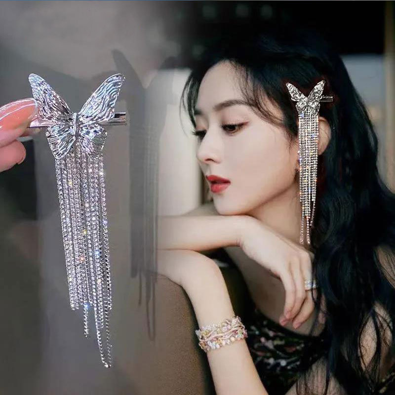 butterfly rhinestone tassel silver (nozzle clip)
