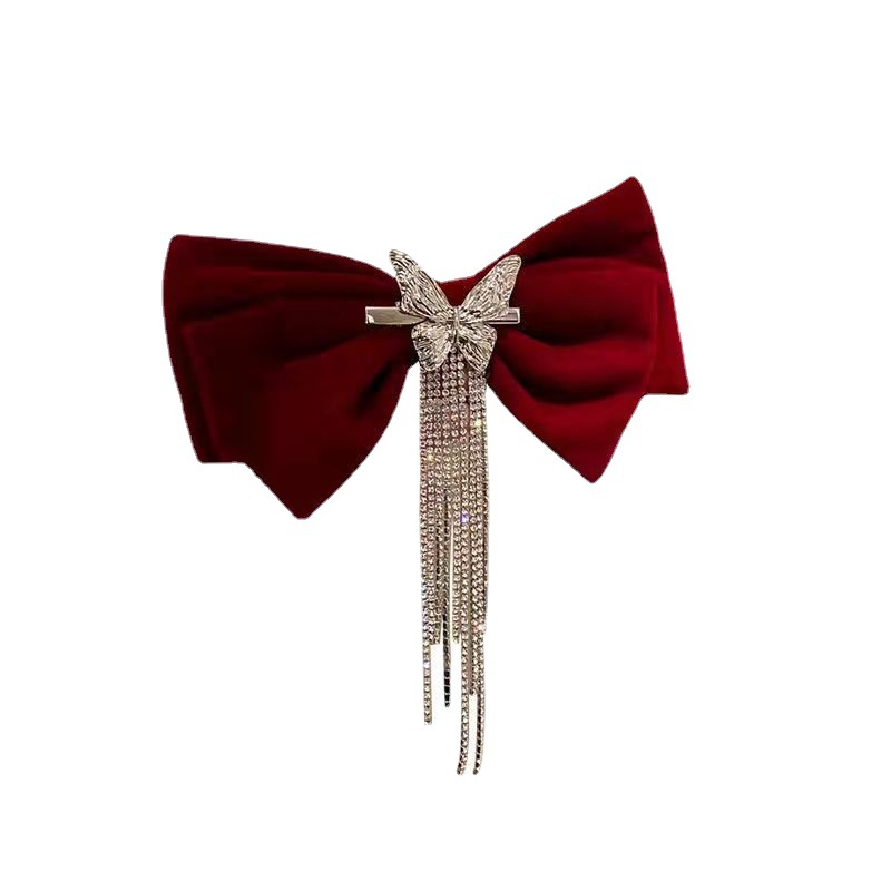 (red) velvet bow + tassel butterfly