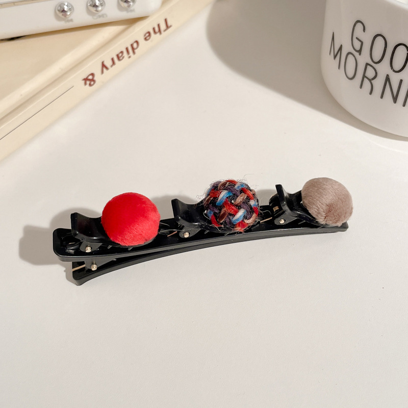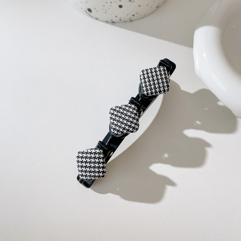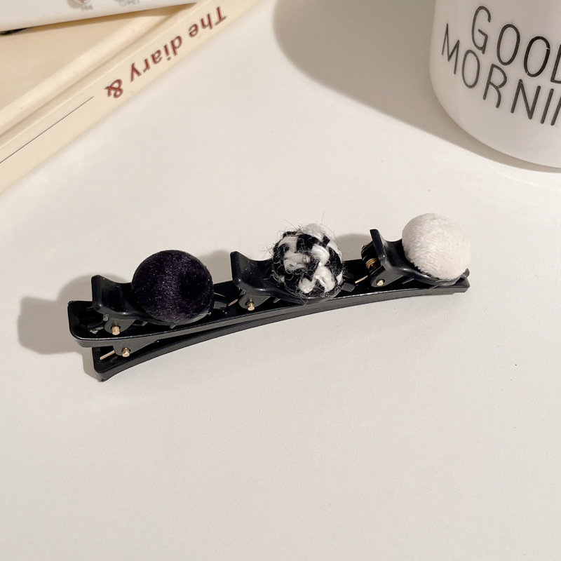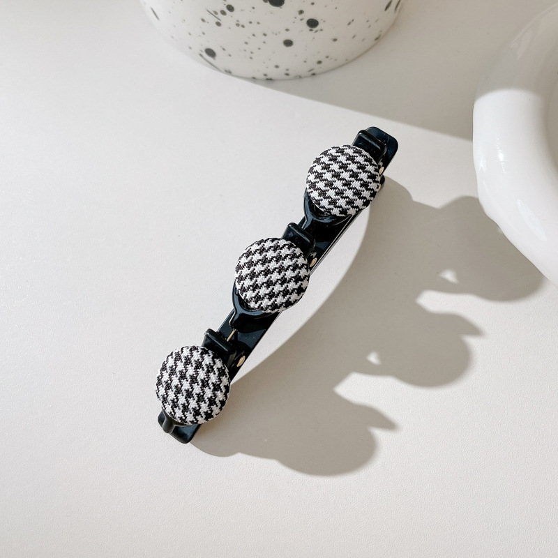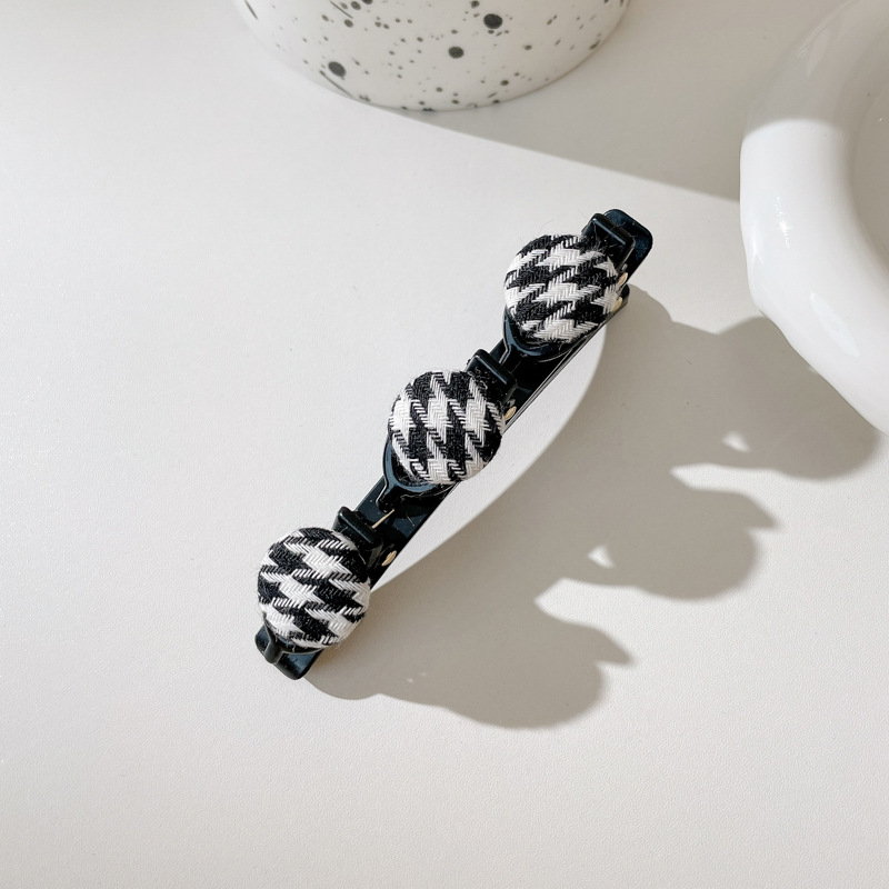 11# black + plaid + white ball barrettes