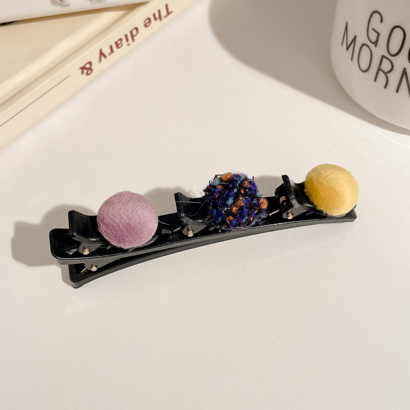 2# coffee + gray + purple ball barrettes