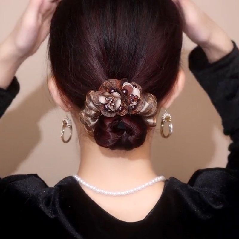 black double flower hair ring
