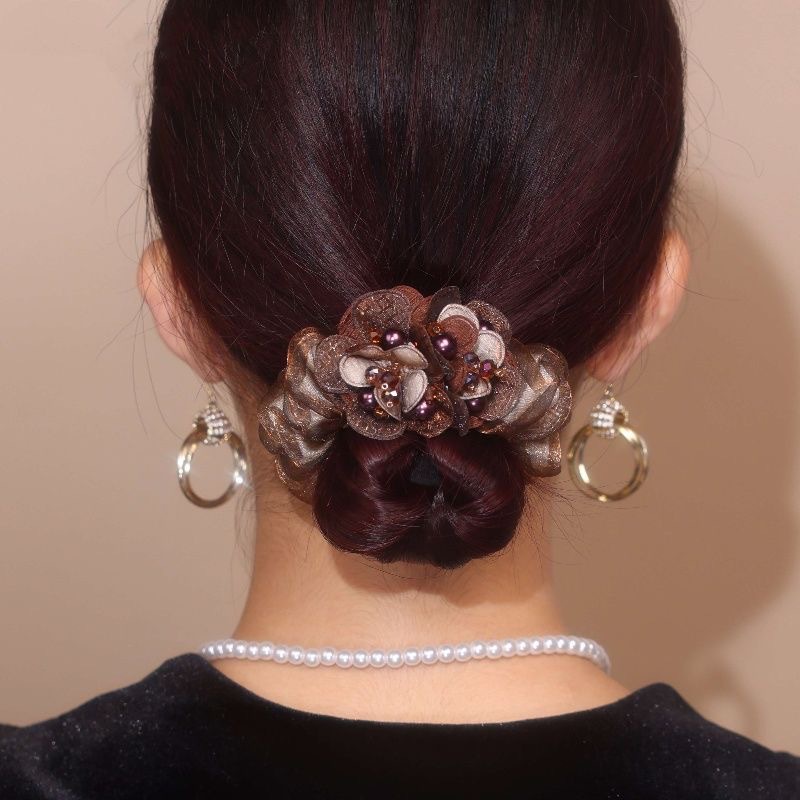 brown beaded flower hairband