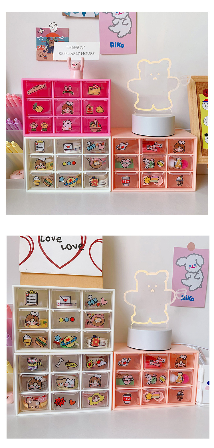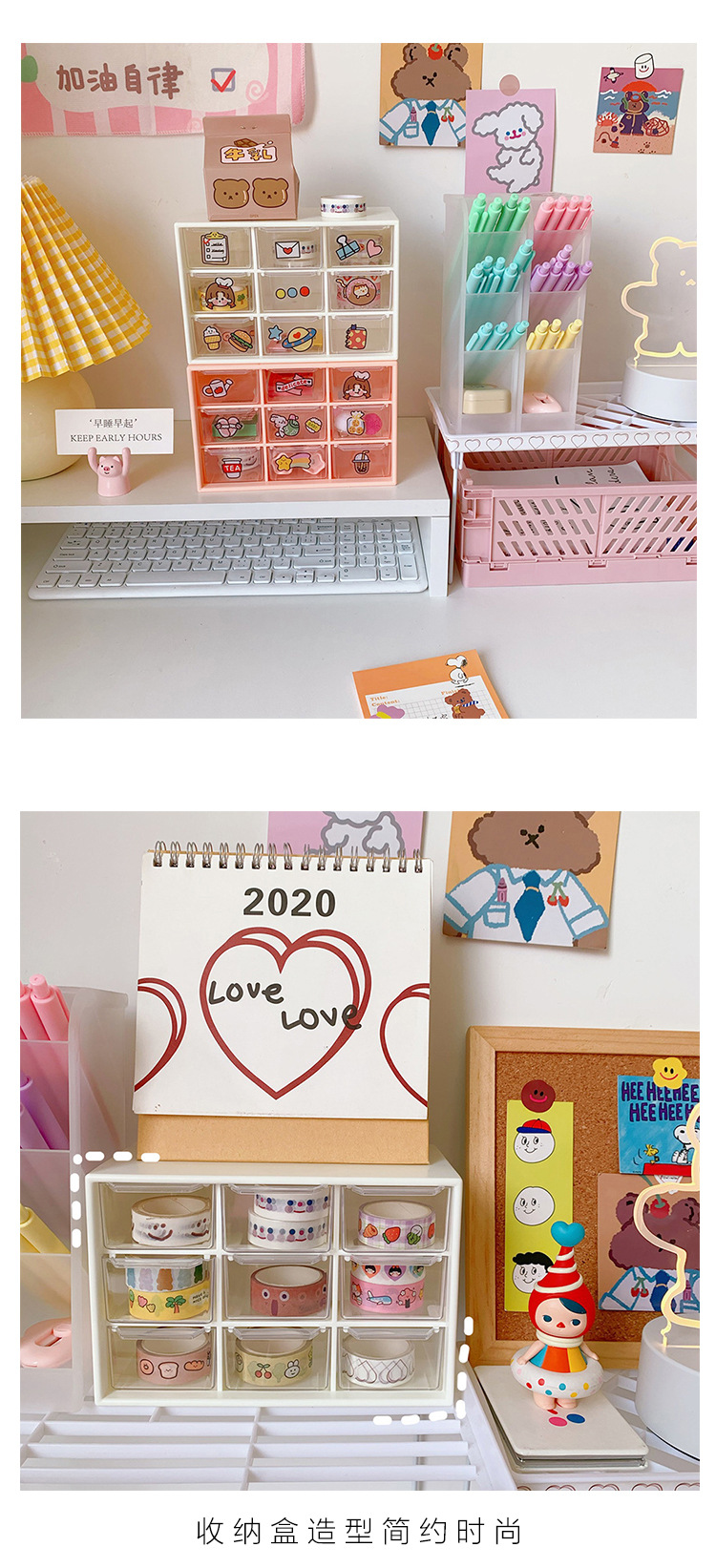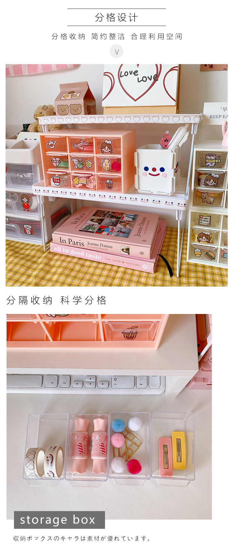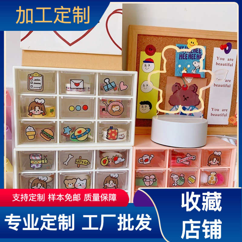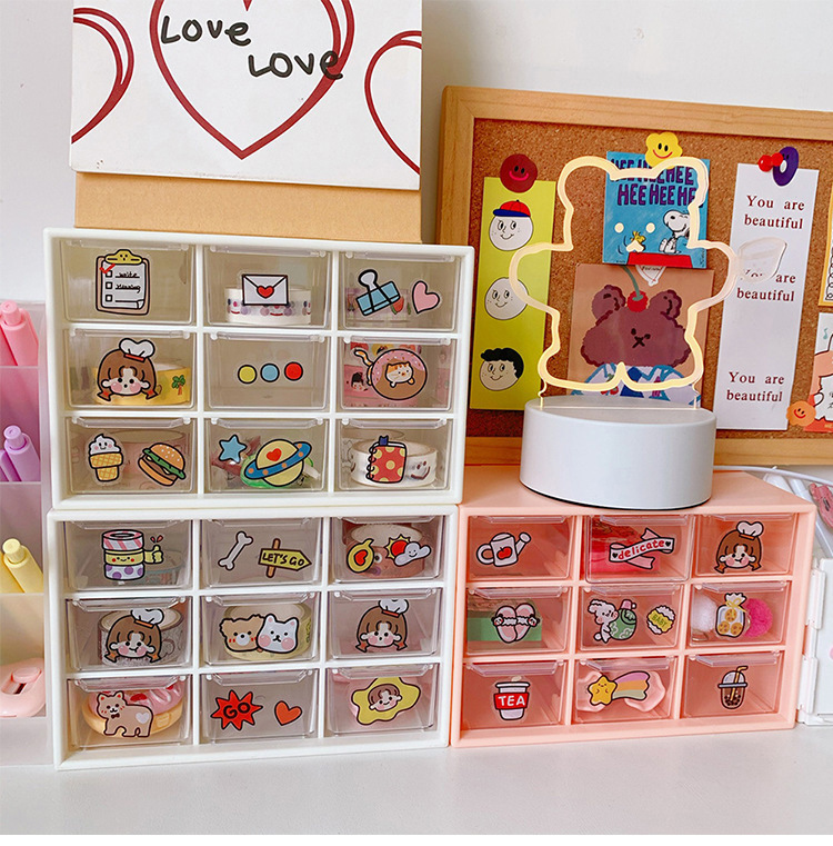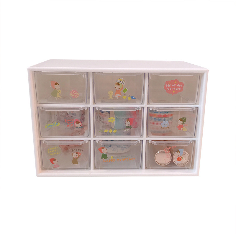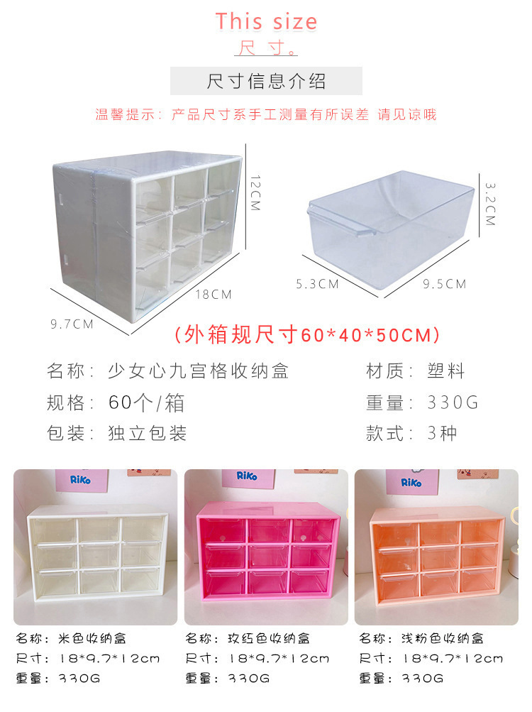 girl heart ins style nine grid student desktop dustproof drawer storage box stationery jewelry and cosmetics storage