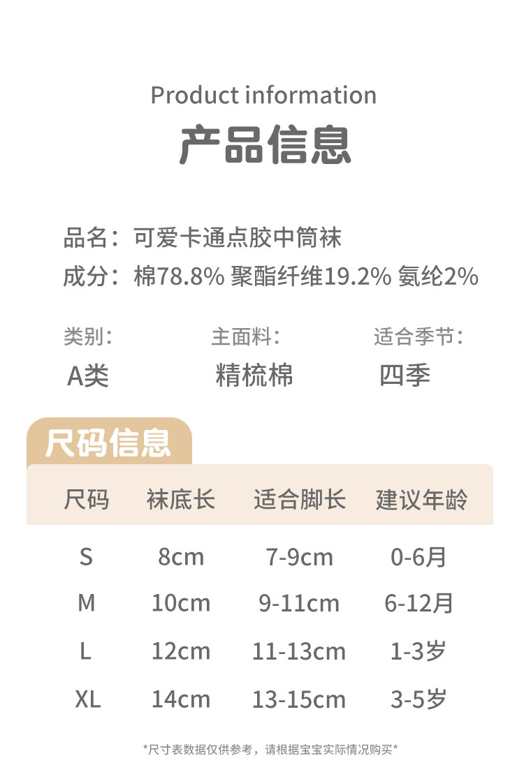 | size xl socks sole length 14cm (recommended for 3-5 years old) | CN¥ 0.0 | 2946 double available |